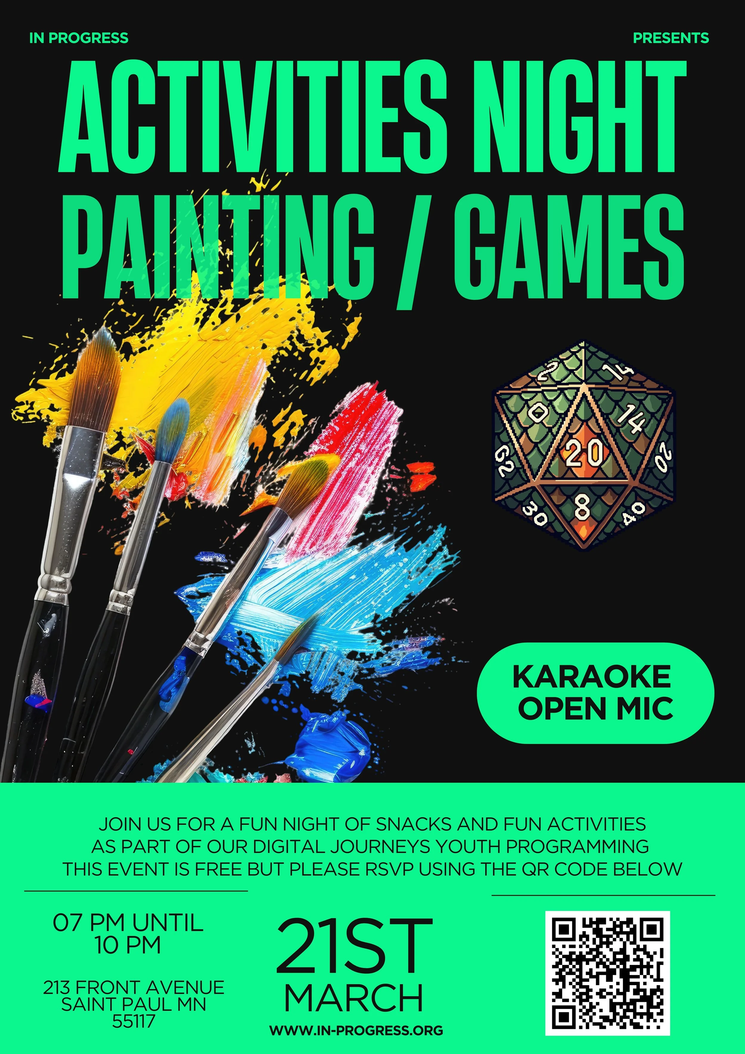 Please join us for an evening of fun arts activities that include games, painting and open mic / karaoke fun!