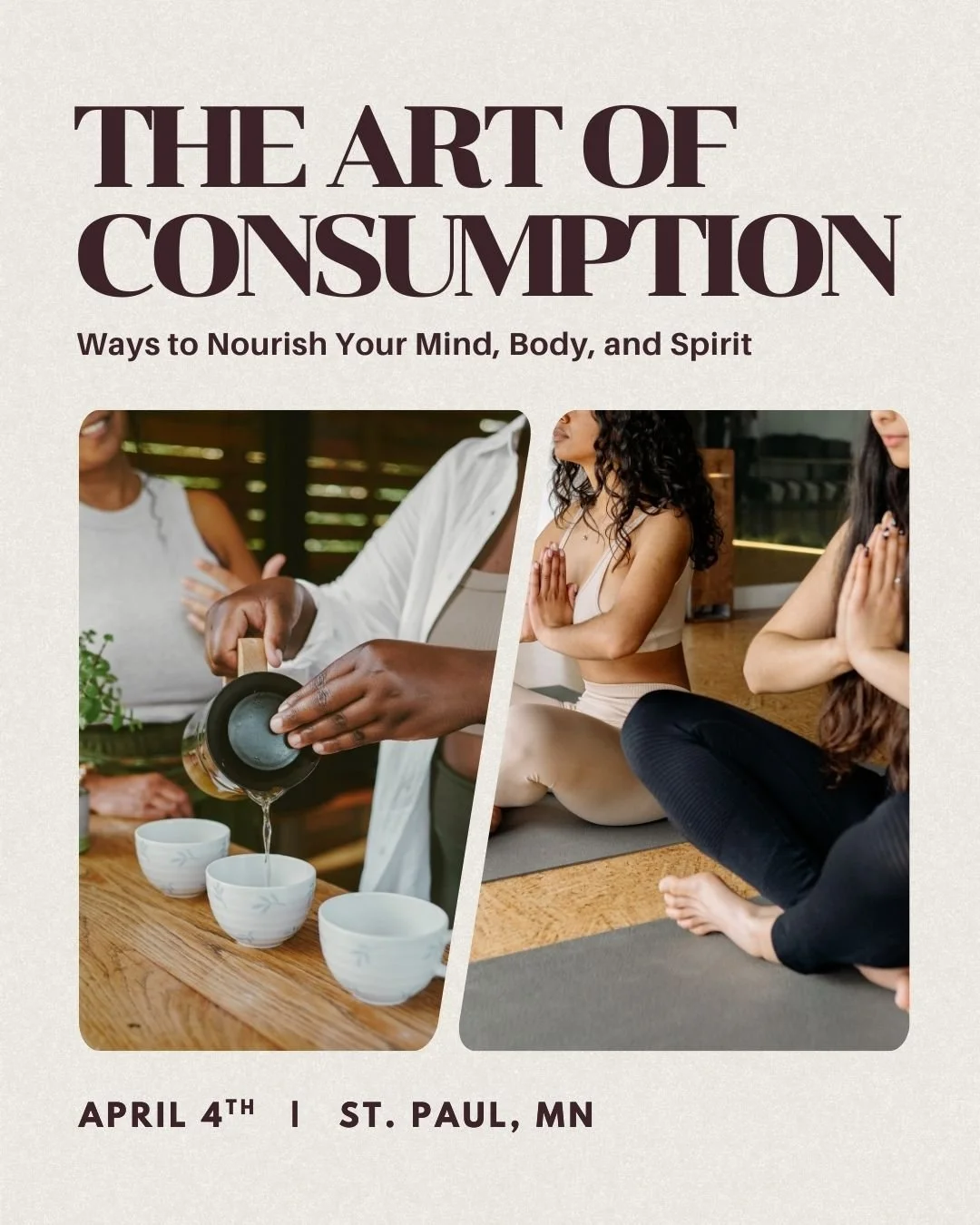 How is this impacting me — physically, mentally, and emotionally? The Art of Consumption is an interactive mindfulness workshop that invites us to explore a more conscious relationship with what we take in every day — from food, media, experiences, and energy.